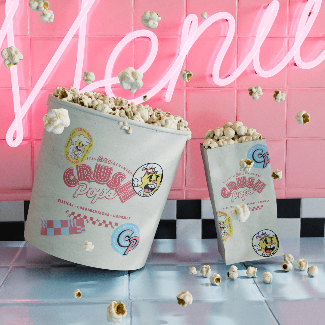 Crushpops es un modelo de negocio enfocado a la venta de palomita comercial y gourmet. A diferencia de la palomita común, esta se revienta al 100%, lo que aumenta su calidad y sabor.